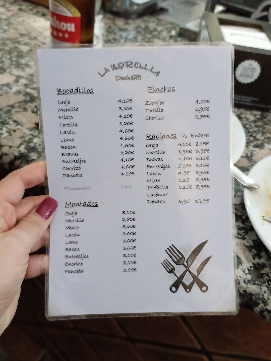 Bar-Cervecería La Morcilla is a true gem tucked in Villaverde, Madrid, where tradition meets the vibrant spirit of a classic tapas bar. This neighborhood favorite serves up authentic flavors, with standout dishes like the perfectly cooked oreja (pig’s ear) and the house-made spicy morcilla (blood sausage), both praised for their balanced flavors and textures. The menu is simple but expertly crafted, featuring comforting staples such as mixed bocadillos where oreja and morcilla blend harmoniously, and crispy patatas bravas that complement the savory plates beautifully.